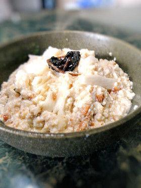 ①豆腐100gは軽く水切りし、長芋100gは4cmの短冊切り、梅干し大1個は種を取り包丁で叩く