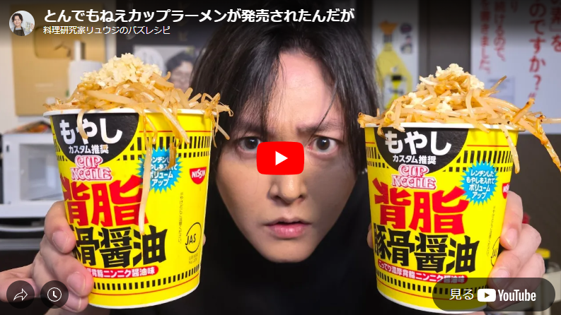 今、SNSで「もやしを入れて食べると飛ぶ」と話題沸騰中の日清『カップヌードル 背脂豚骨醤油 ビッグ』。人気ラーメンYouTuberのSUSURUさんが提唱した食べ方ですが、あの料理研究家リュウジさんが、さらに悪魔的なアレンジを加えてしまいました。