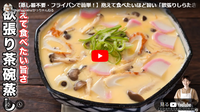 かっちゃんねるさんの「欲張りしらたき茶碗蒸し」は、こんな時におすすめです。