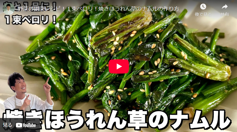 今回はコウケンテツさんの「焼きほうれん草のナムル」をご紹介しました。